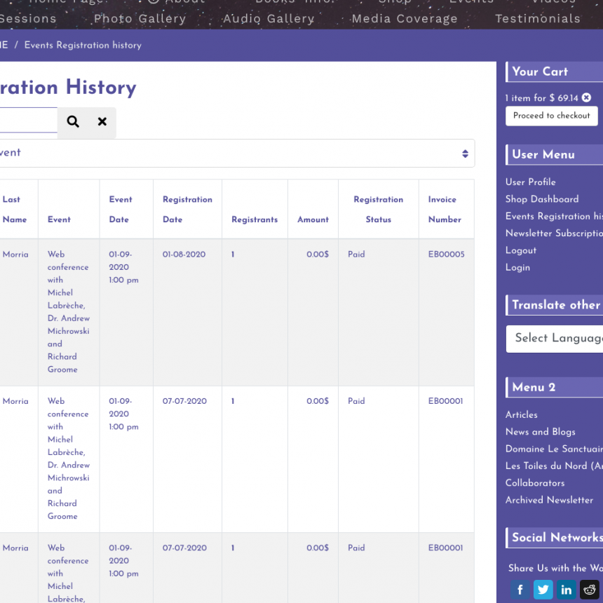 Home page: see towards bottom of this page or list many screen shots of this website with its advanced functonnalities