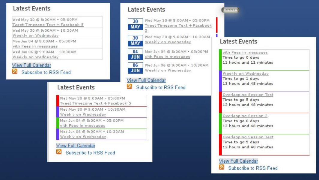 - Events display module with many categories, event type sort, filters, ordering options and quick search.